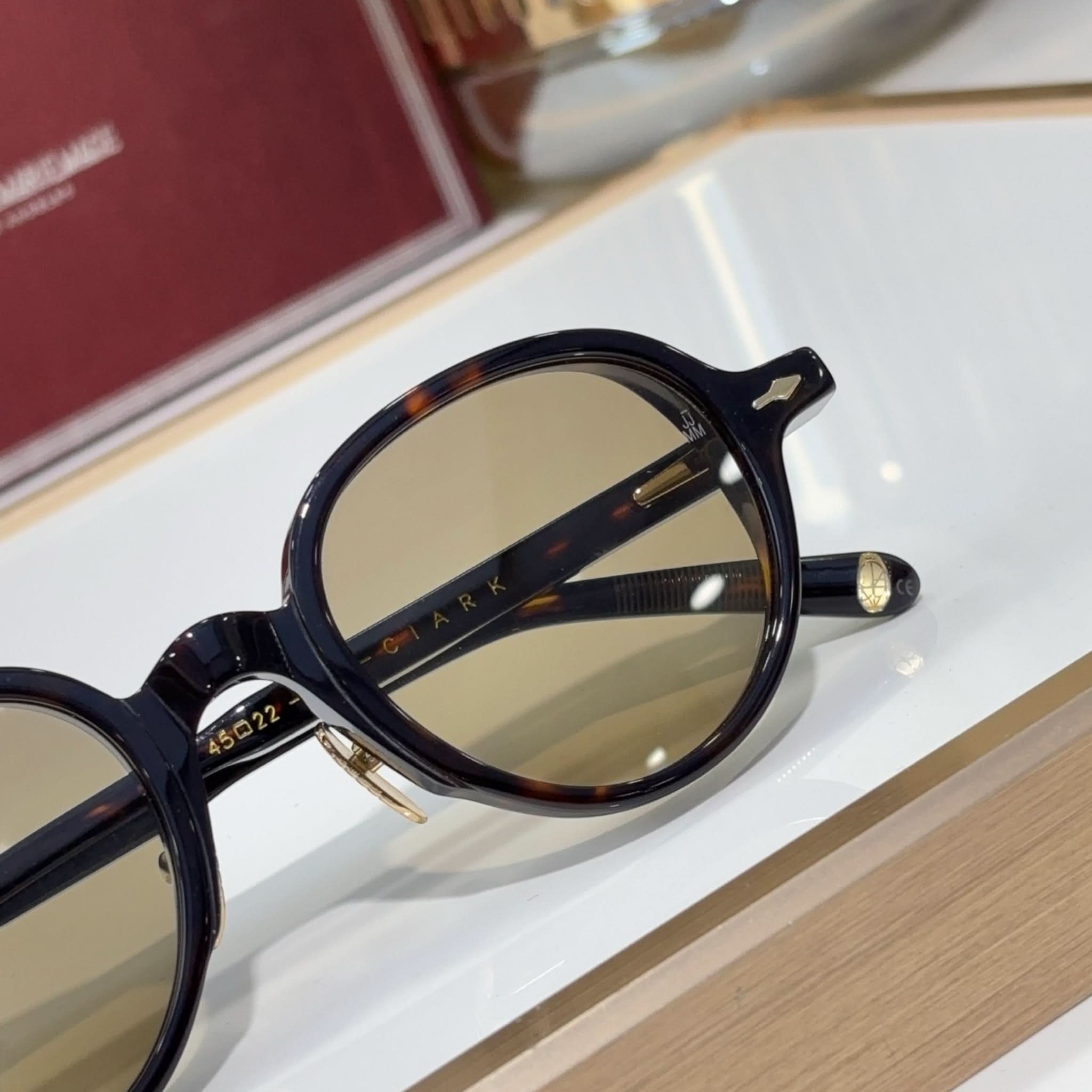 Clark: Dieses JMM-Modell, sorgfältig gefertigt von Sabaes Elite-Kunsthandwerkern, verkörpert den Geist einer limitierten Edition aus ultraleichtem, tief schimmerndem Celluloseacetat.