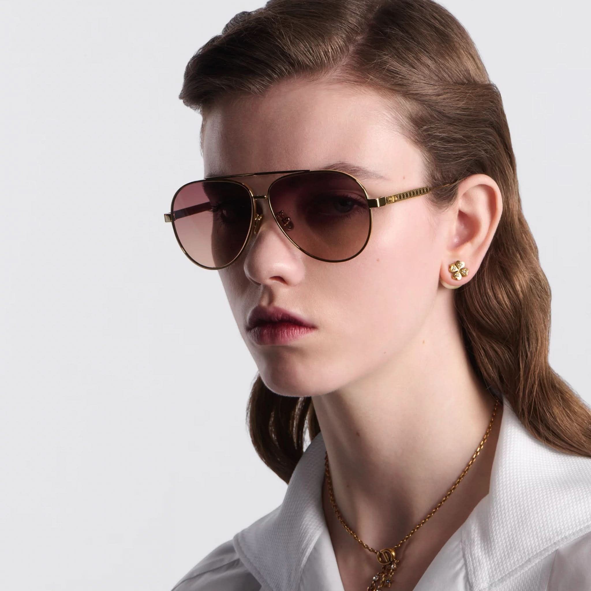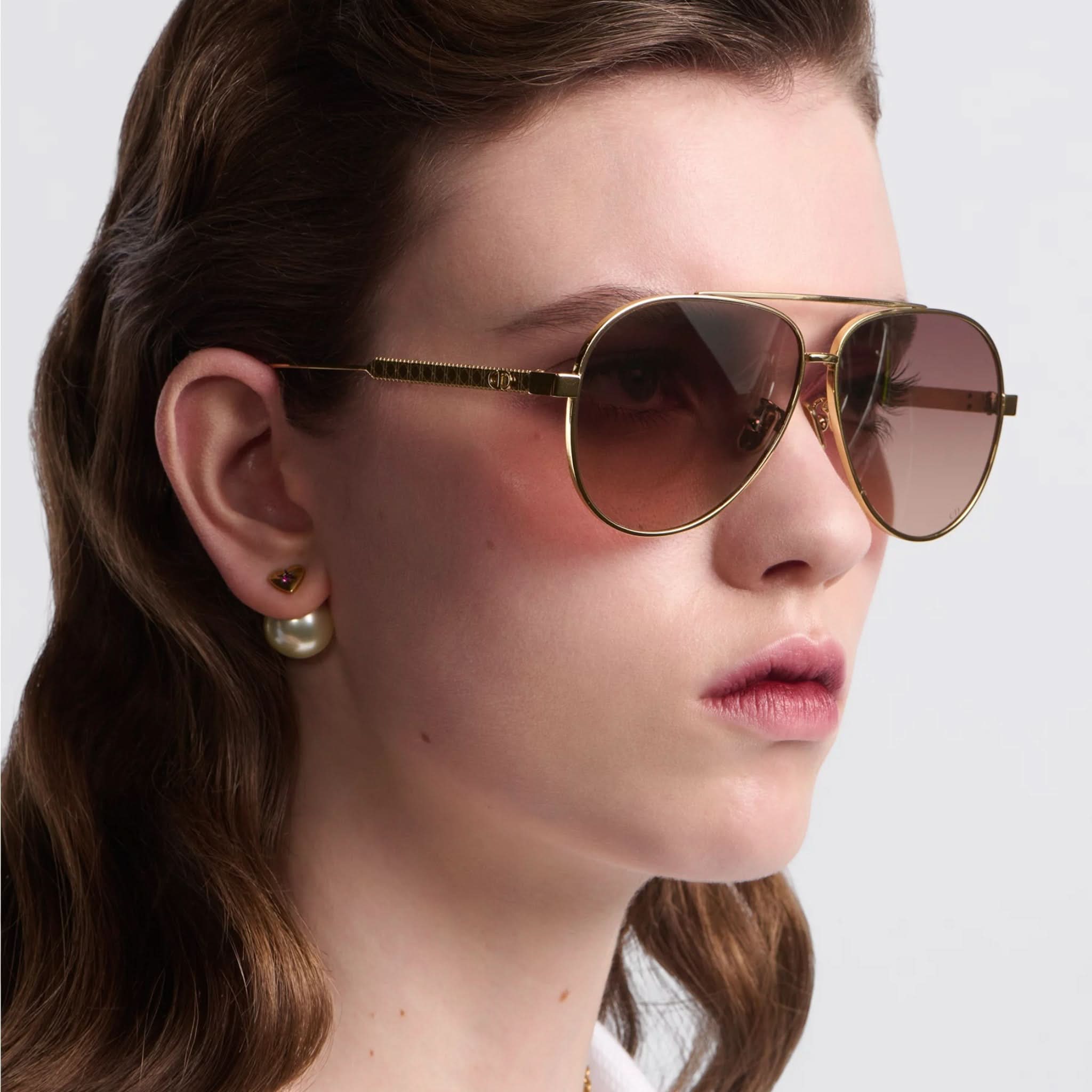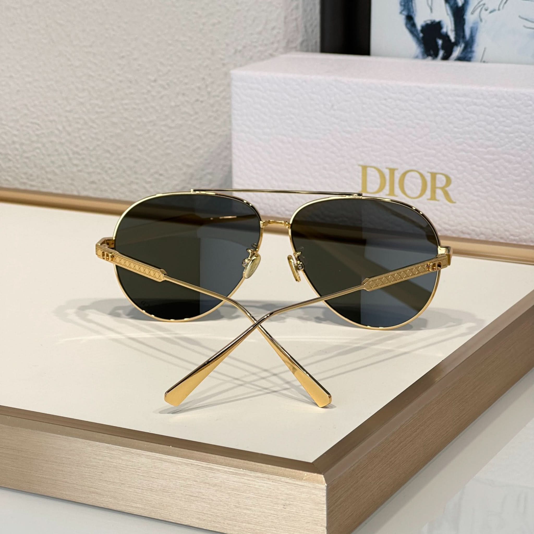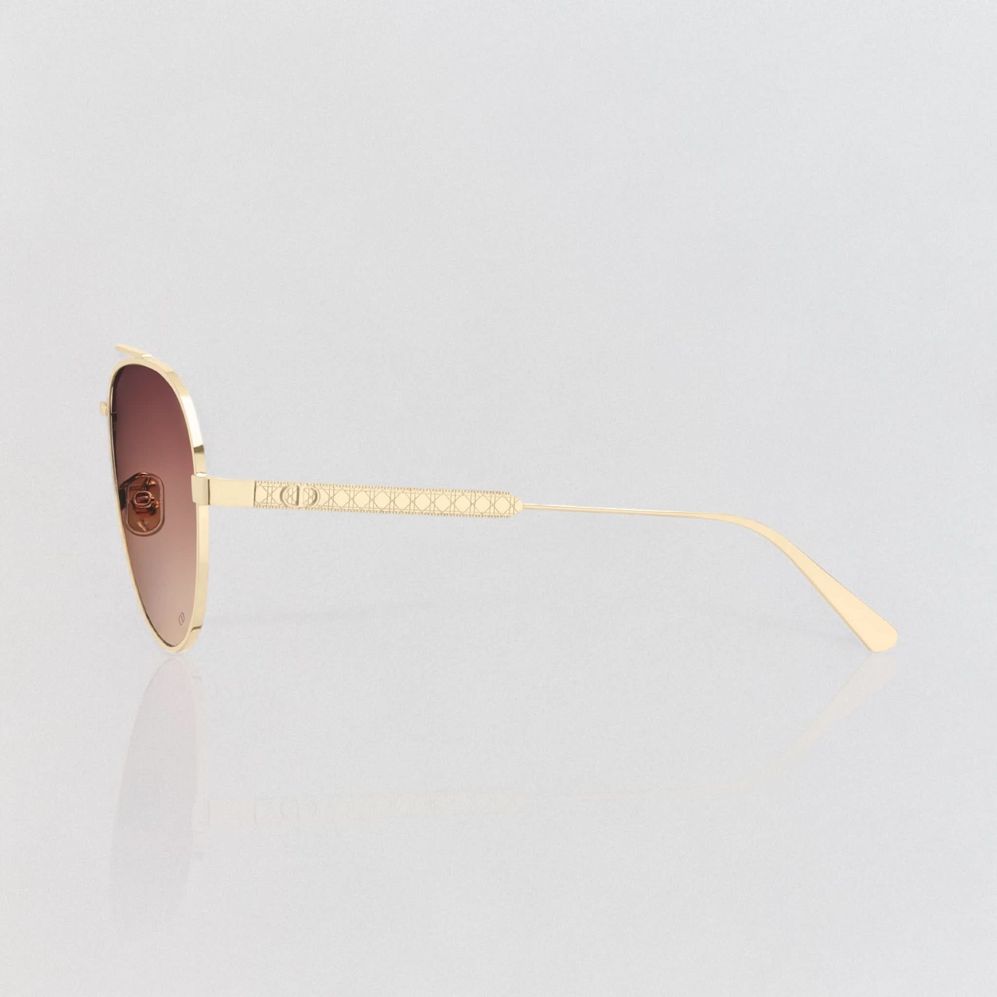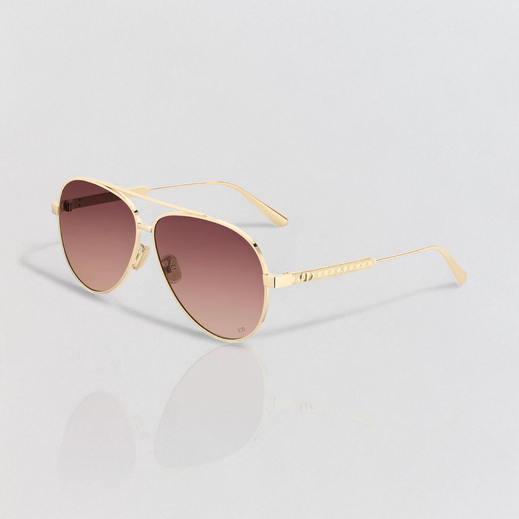Die Sonnenbrille Eclat Doré vereint Eleganz und Modernität. Dieses Modell besticht durch seinen Pilotenrahmen aus Metall mit dem ikonischen Cannage-Motiv und wird durch filigrane CD-Gravuren an den Bügeln abgerundet. Diese Brille bietet 100 % UVA-/UVB-Schutz und ist dank ihres korrektionsfreundlichen Designs eine funktionale und stilvolle Wahl. Der Dior Schriftzug am rechten Bügel macht diese Sonnenbrille einzigartig.