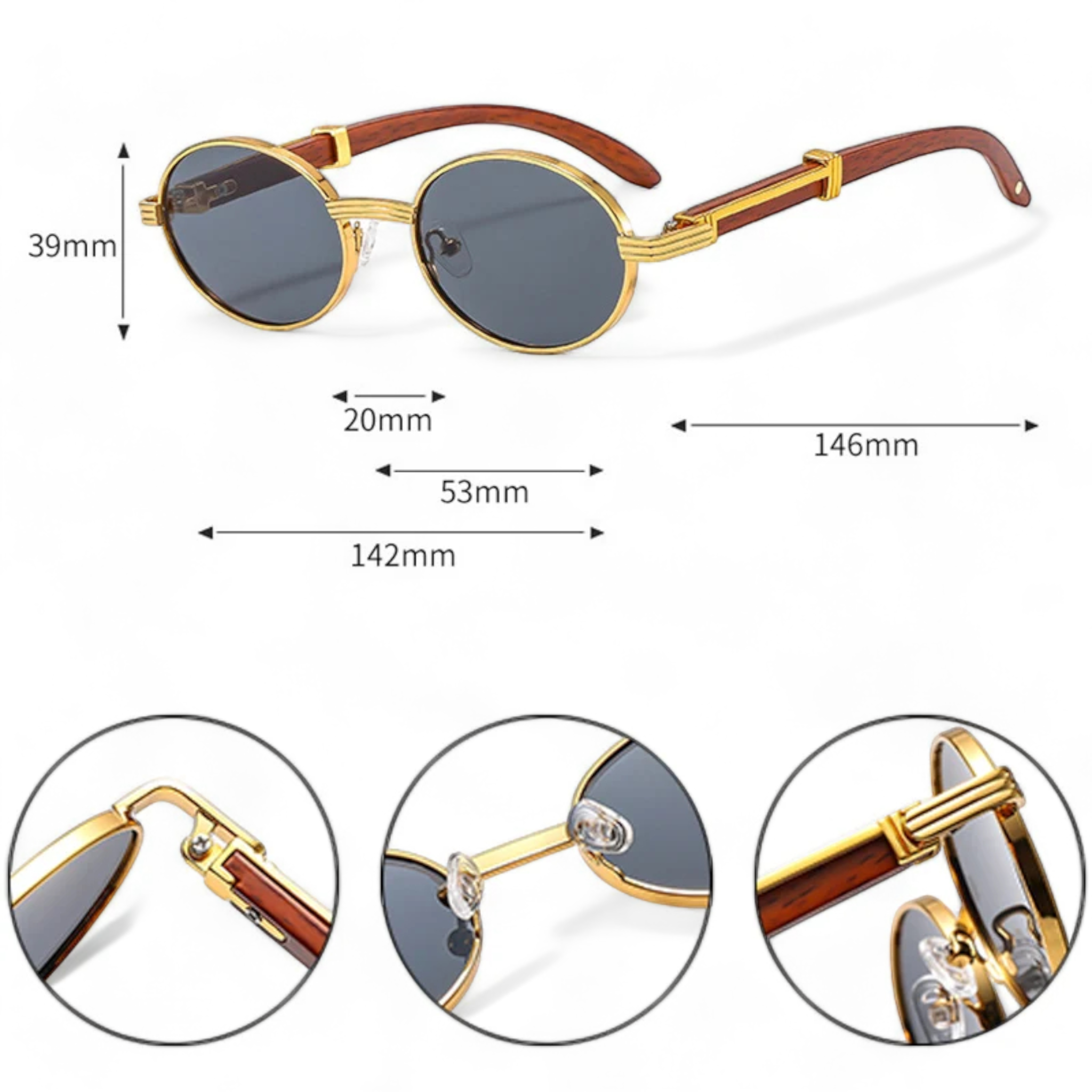 Malzeme: Ahşap çerçeveleriyle doğal ve lüks bir dokunuş sunarken,  lensleri ile kesintisiz bir görüş sağlıyor.