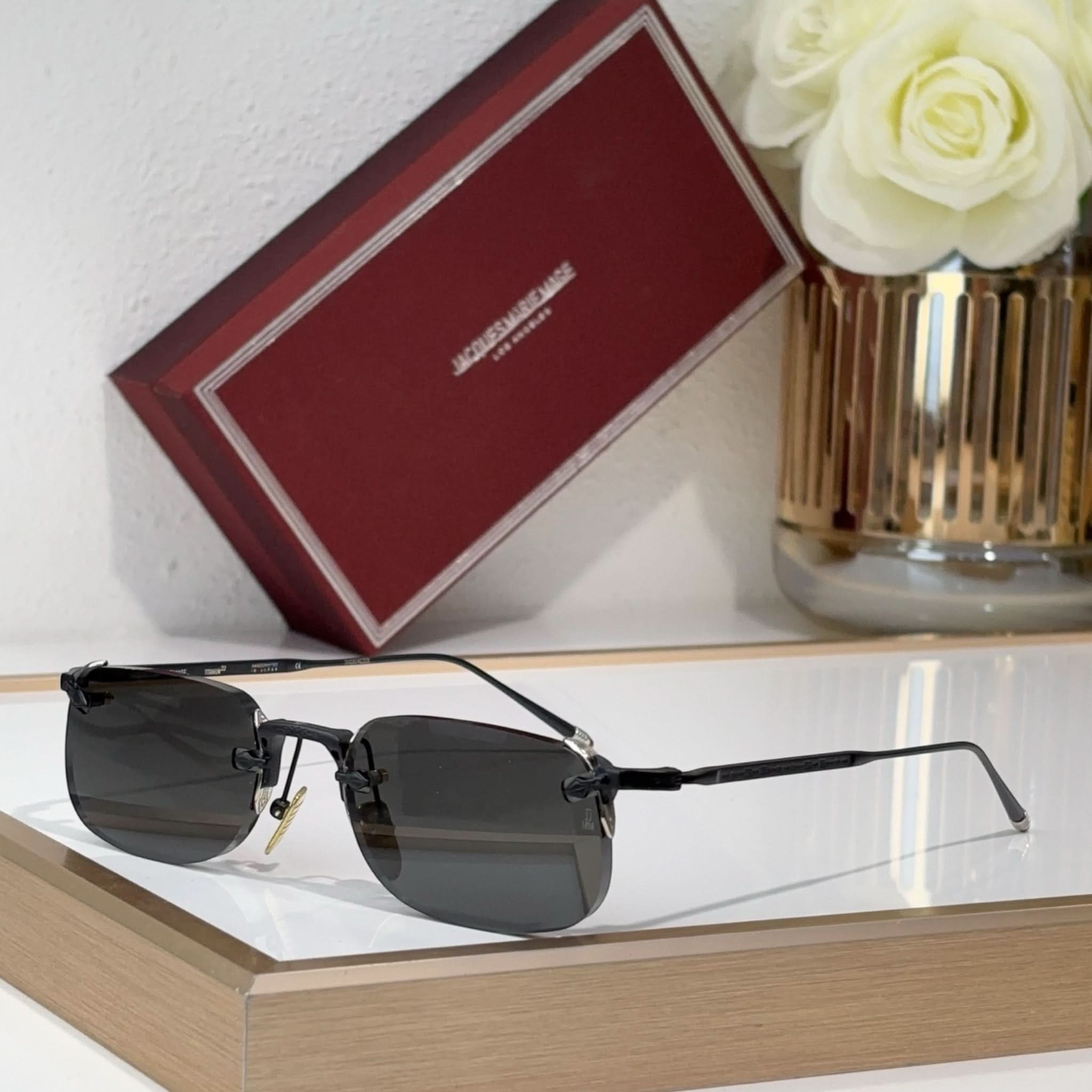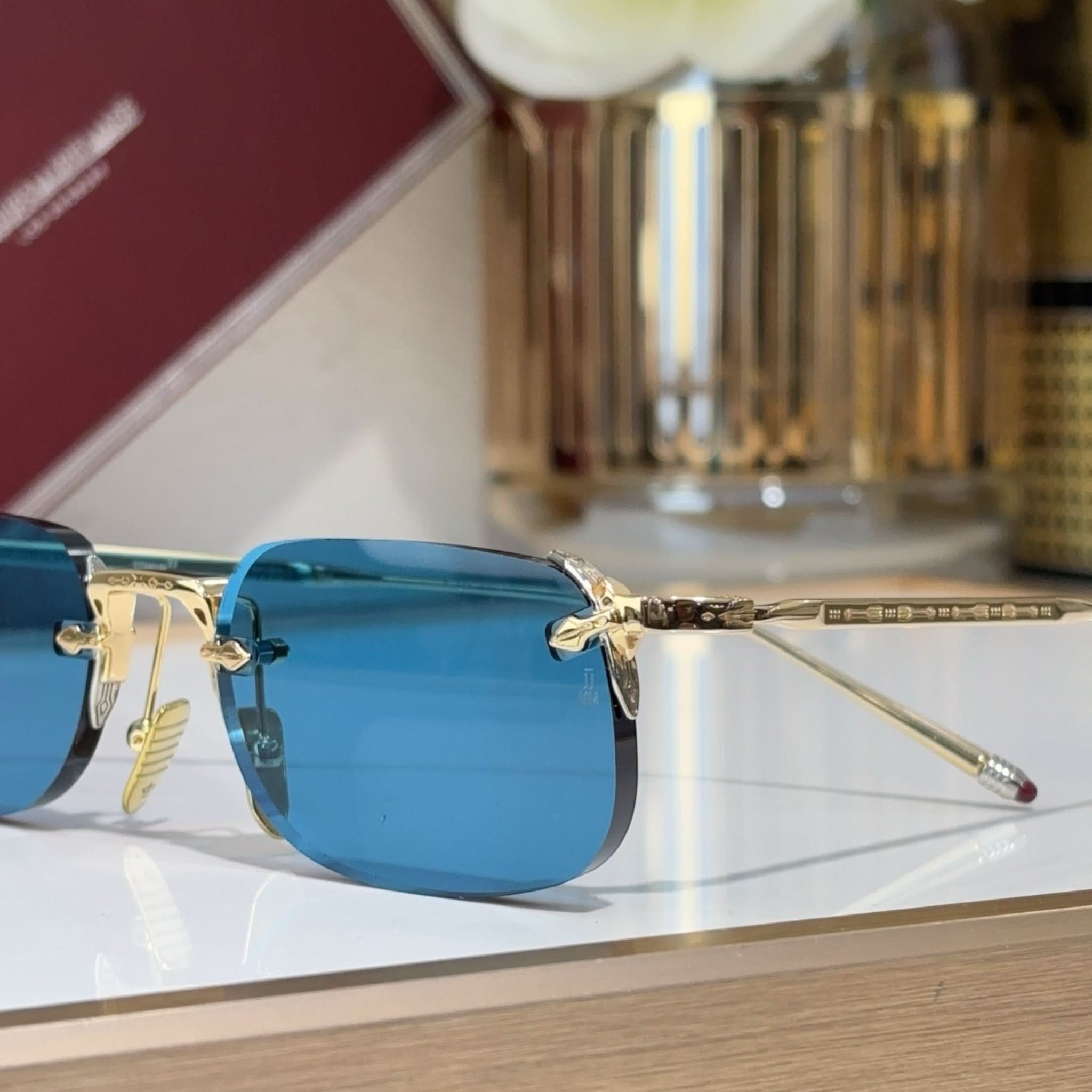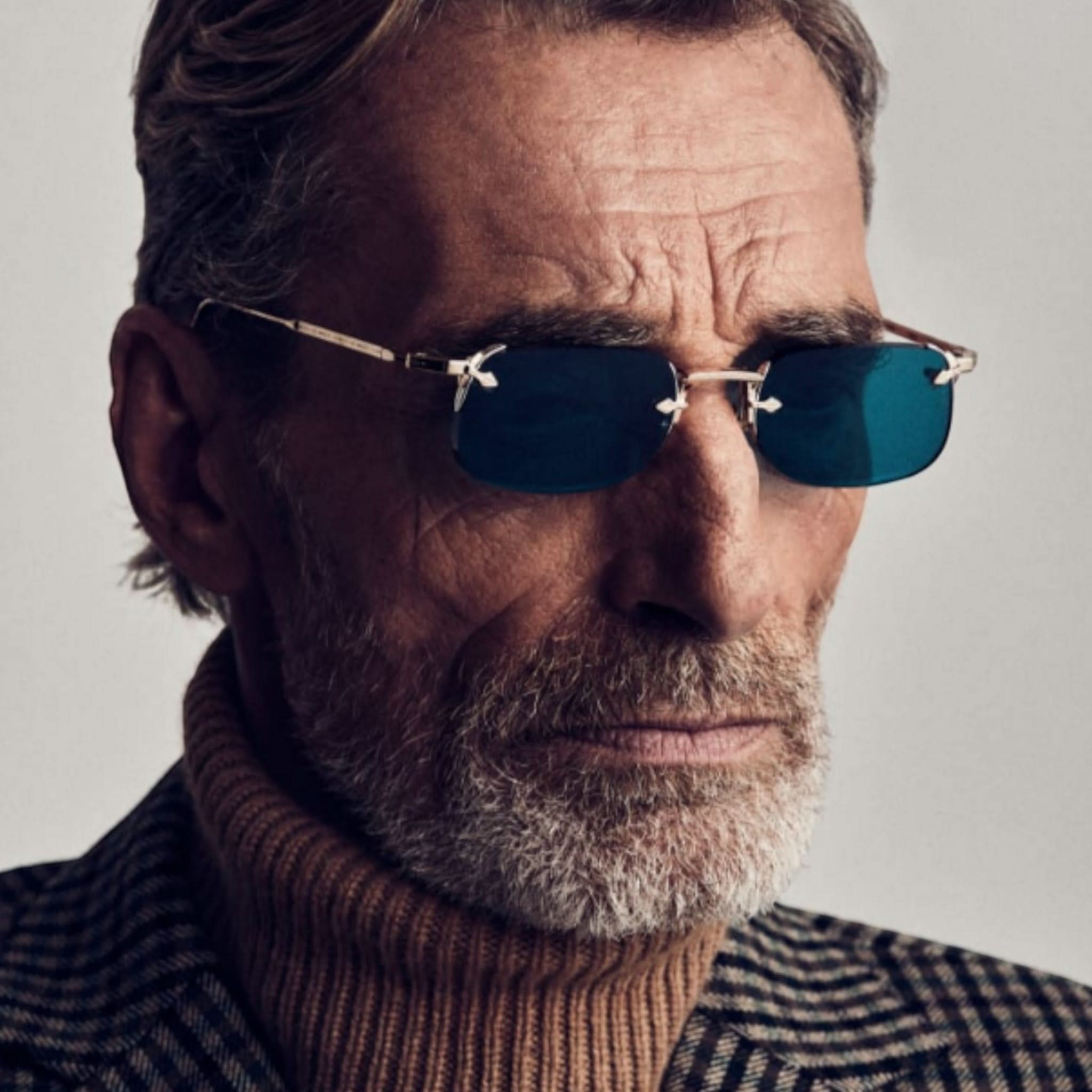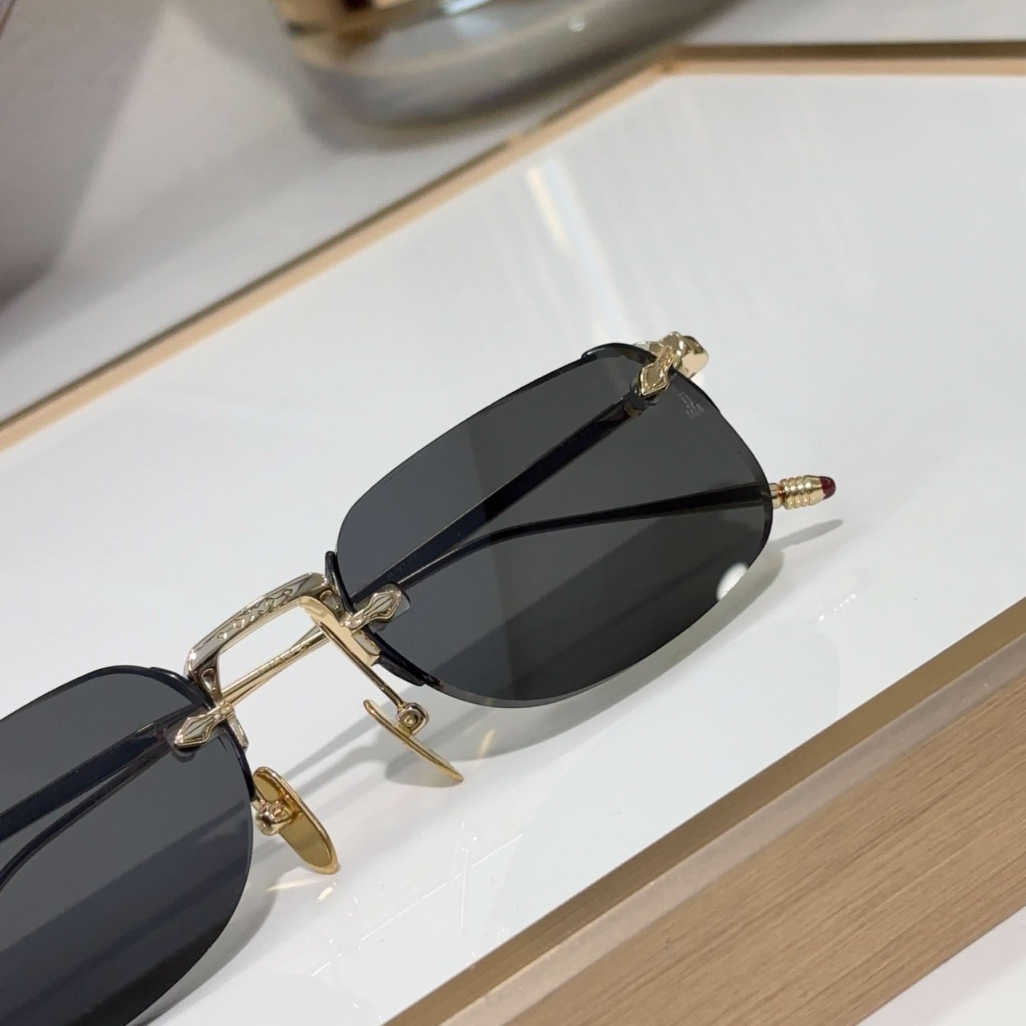 Material: Hochwertige Harzgläser, handgefertigte Bügel aus ultraleichtem Titan aus Italien und Japan und ein rahmenloses Design sorgen für einen markanten Stil.