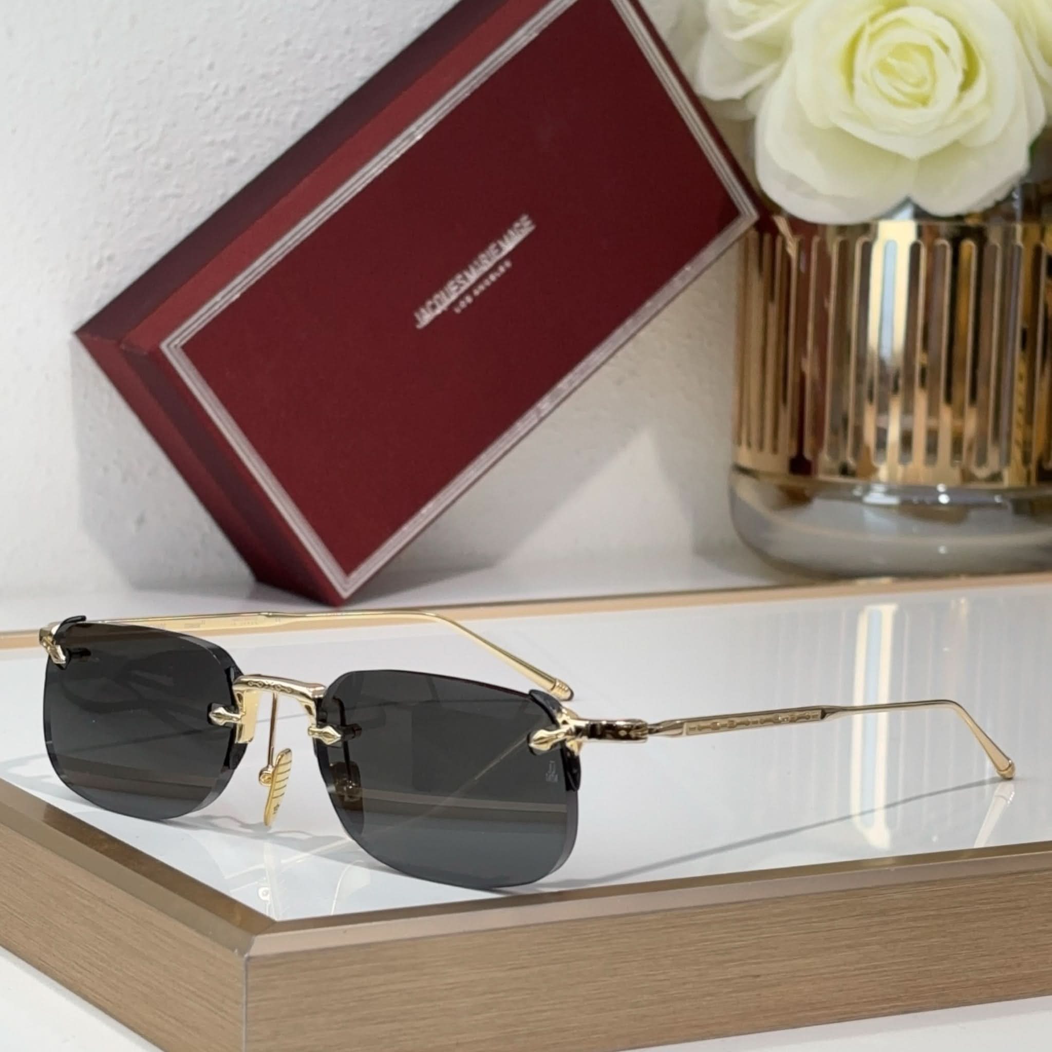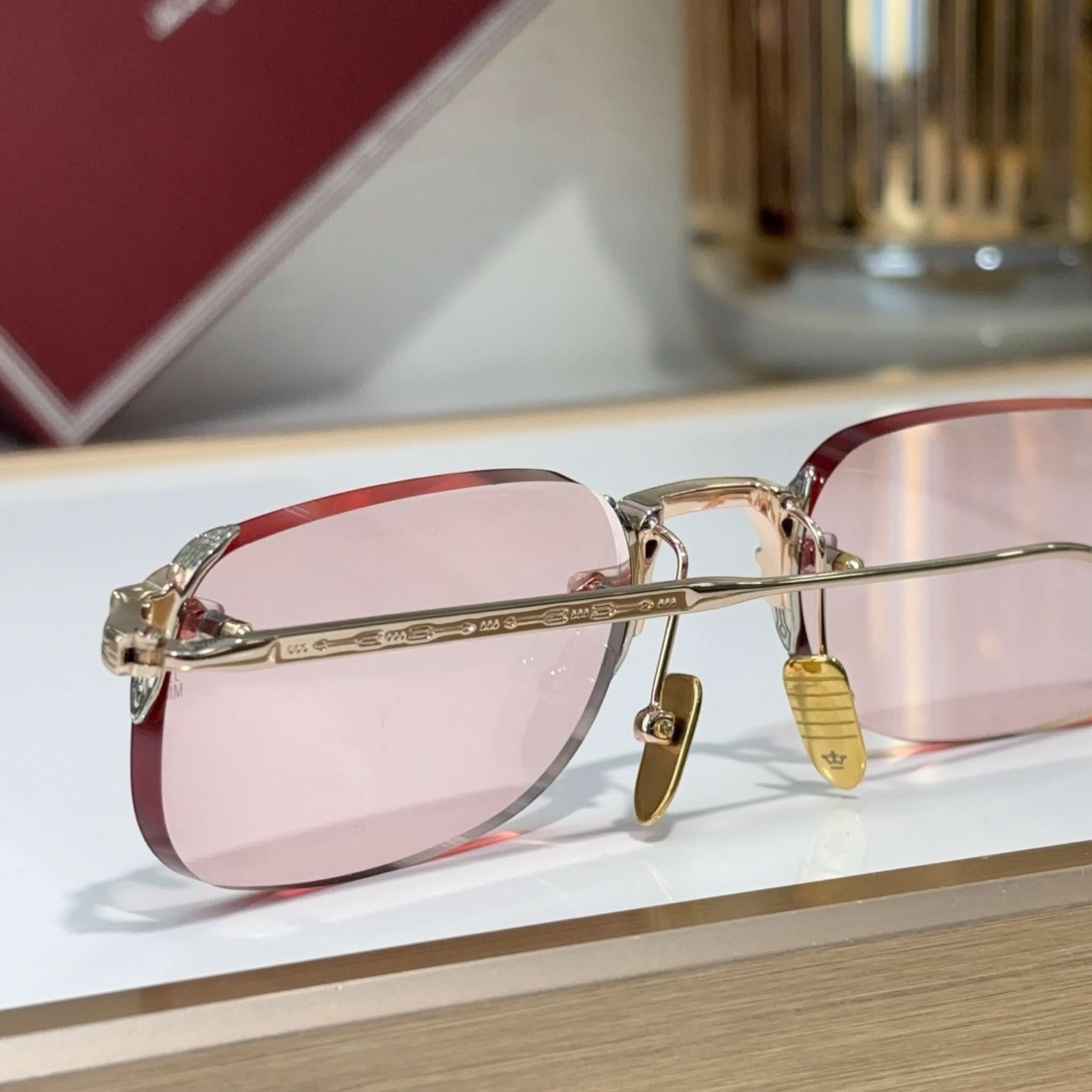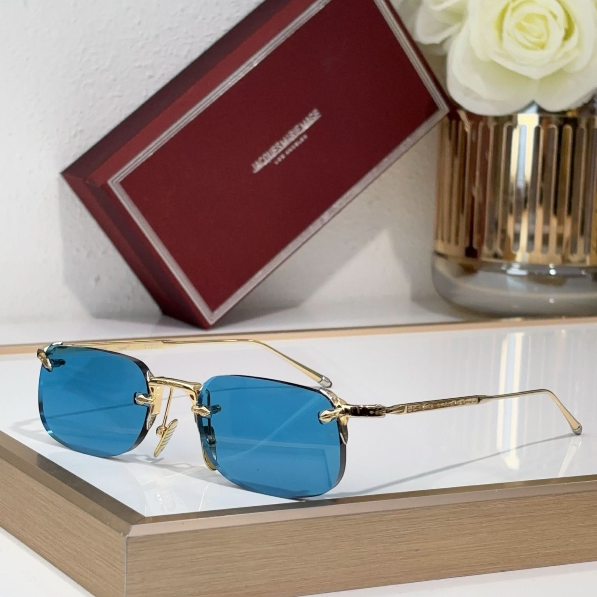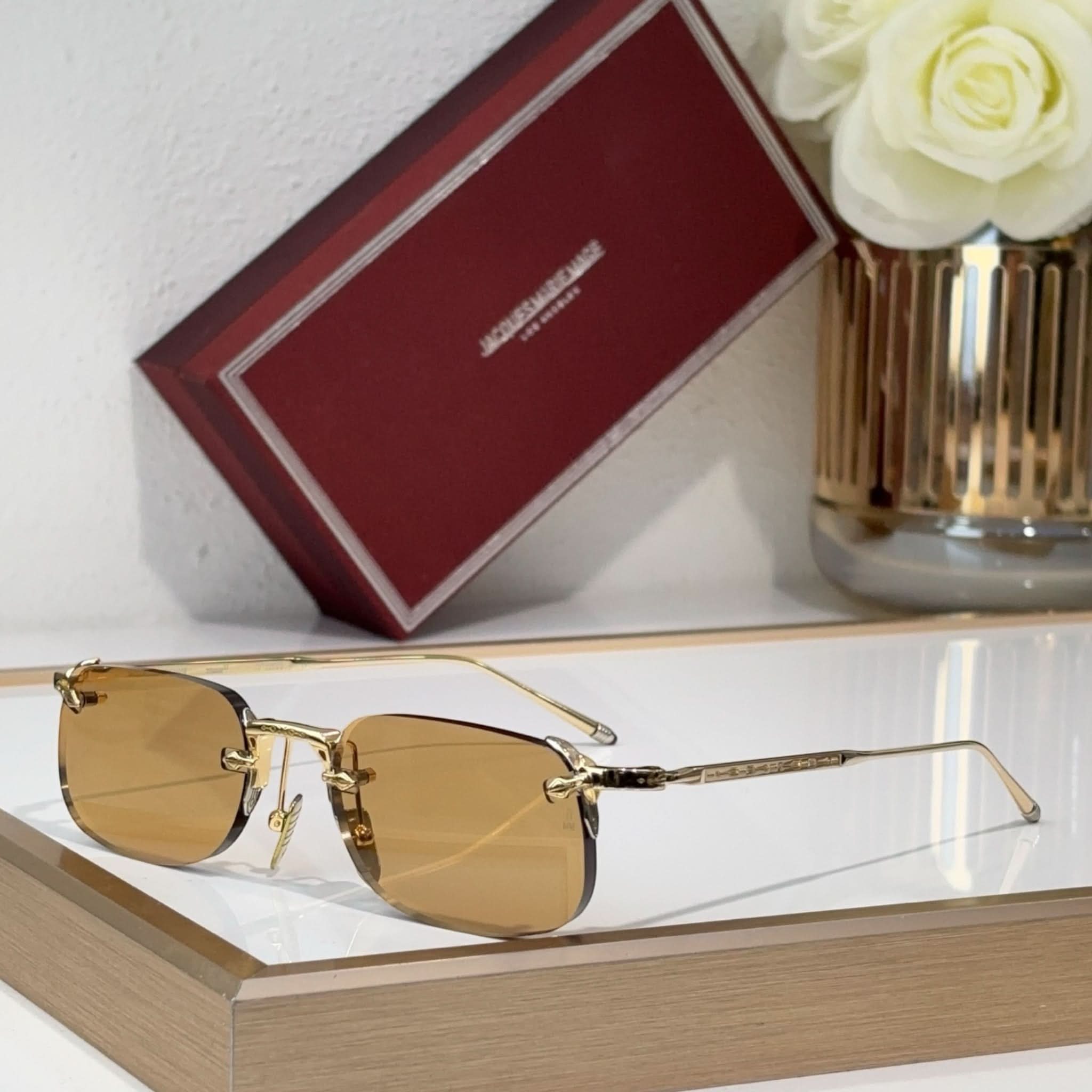 Material: Hochwertige Harzgläser, handgefertigte Bügel aus ultraleichtem Titan aus Italien und Japan und ein rahmenloses Design sorgen für einen markanten Stil.