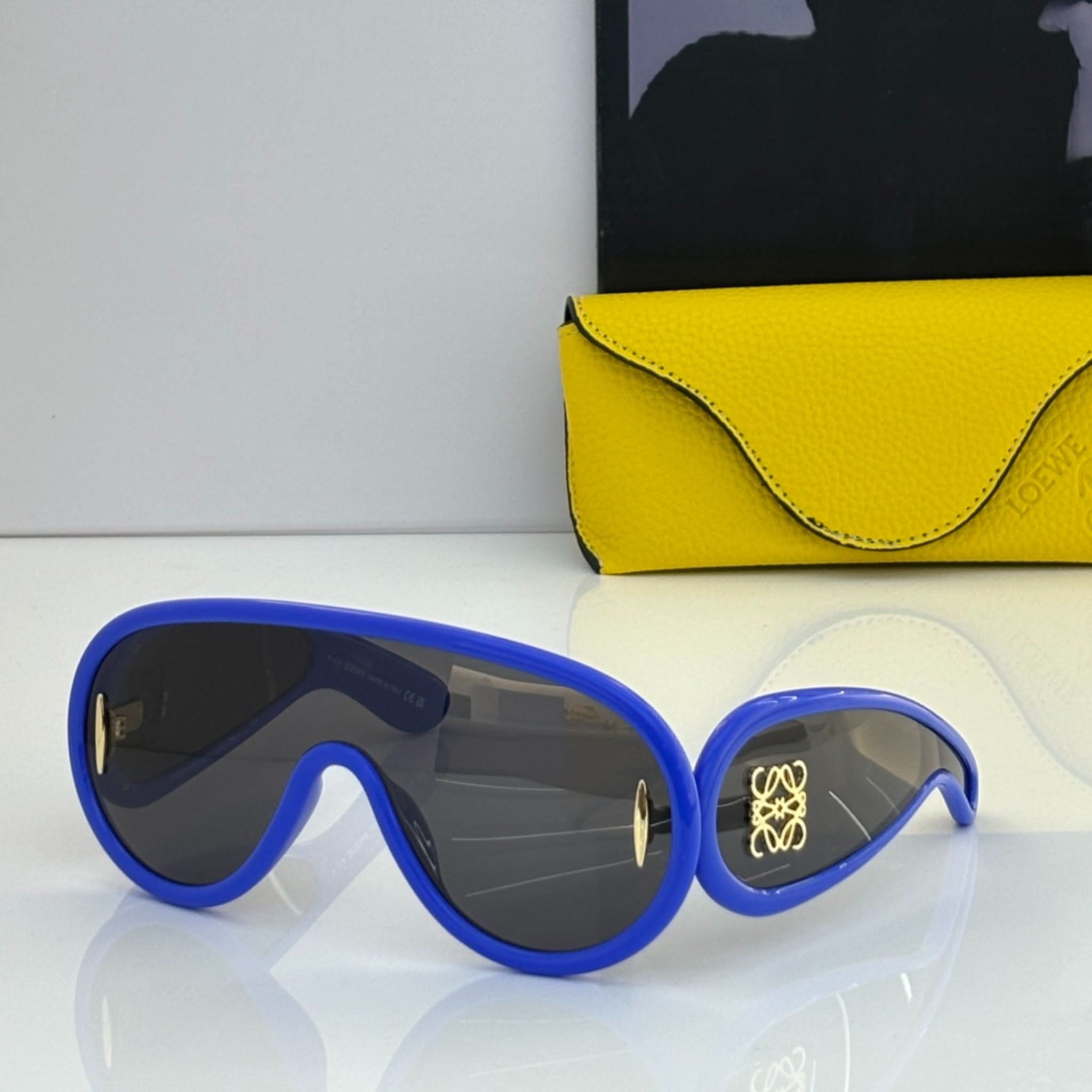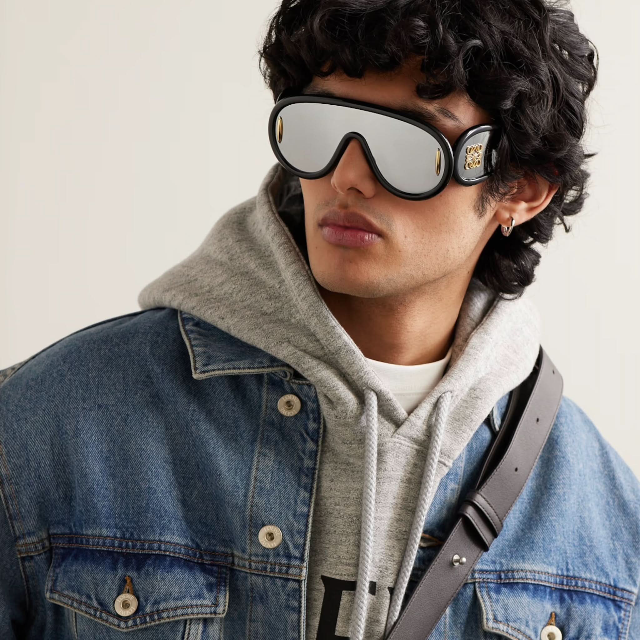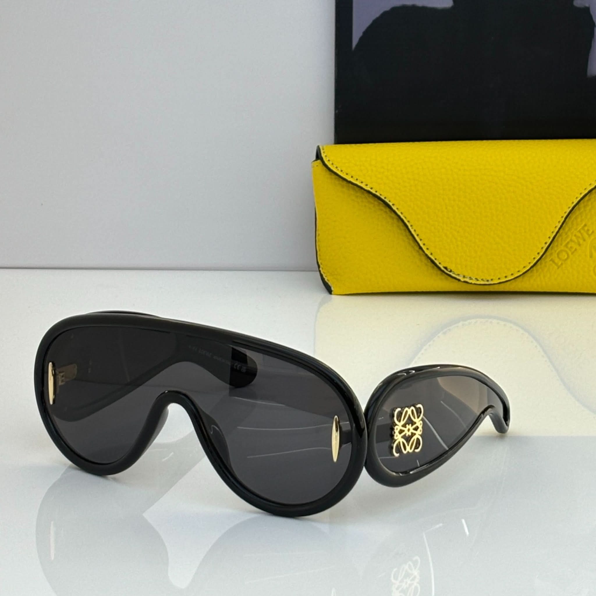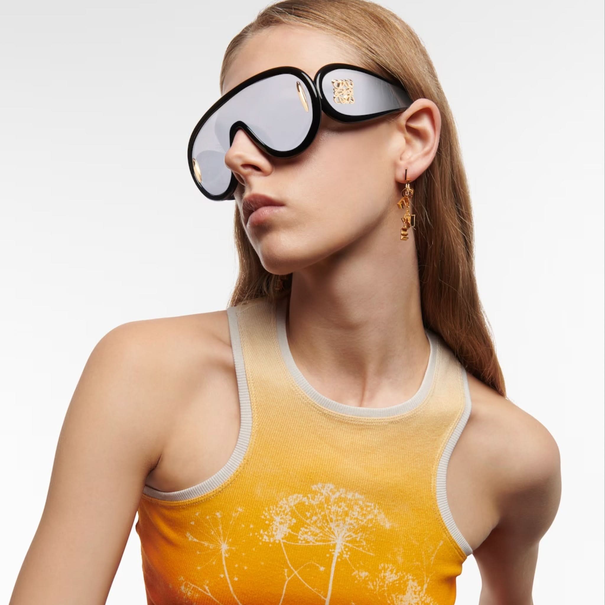 Design: Diese Vollrand-Sonnenbrille mit schildförmigem Acetatrahmen besticht durch einen markanten und modernen Stil.