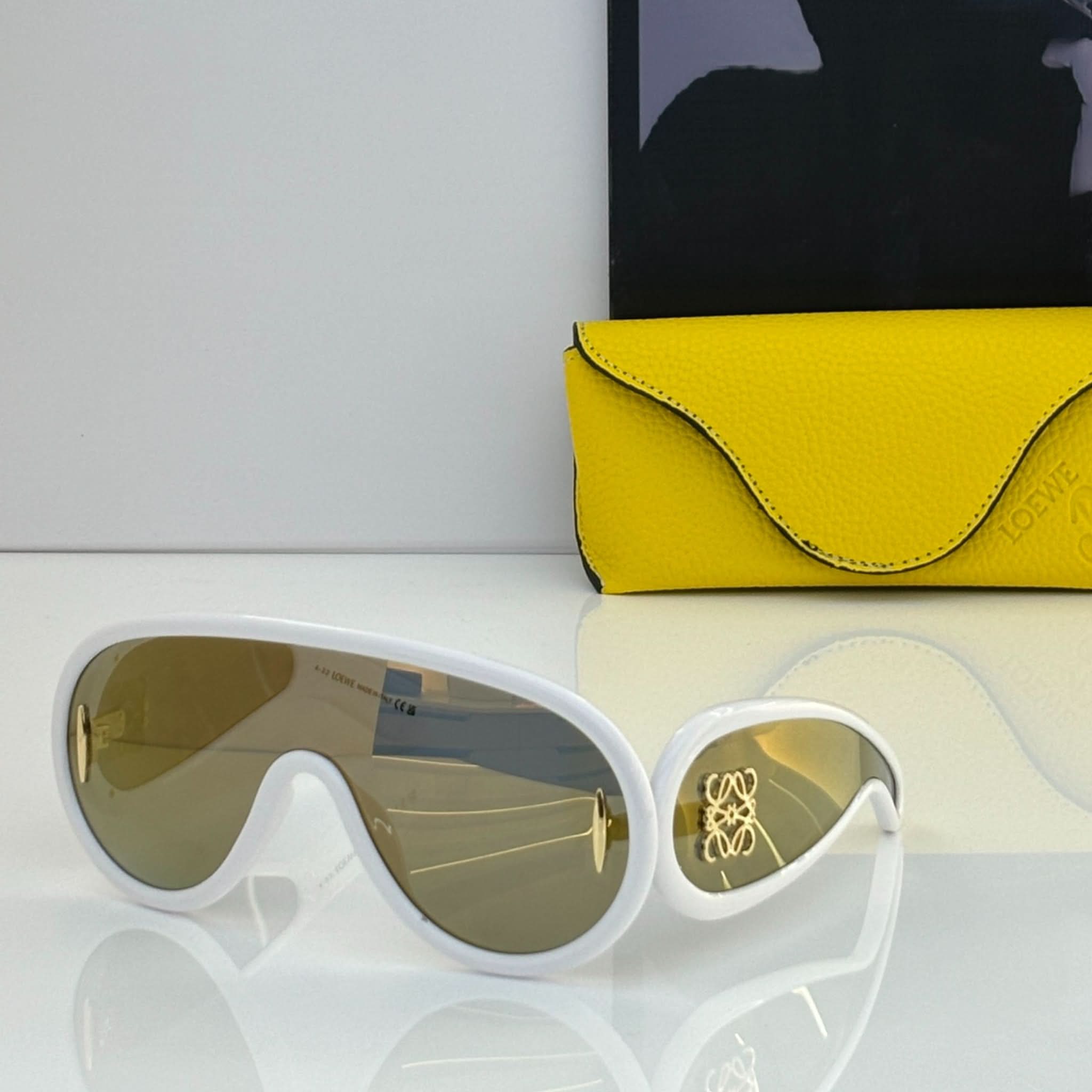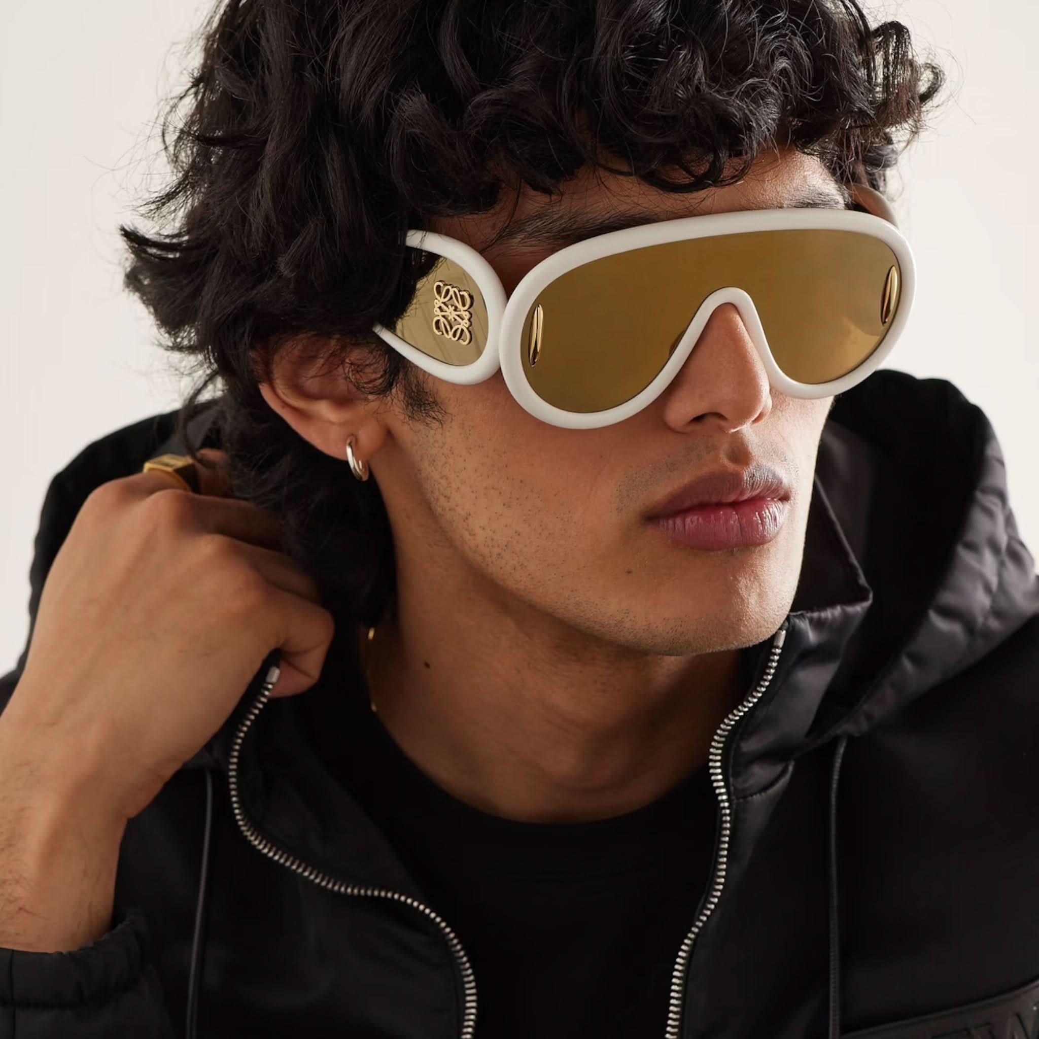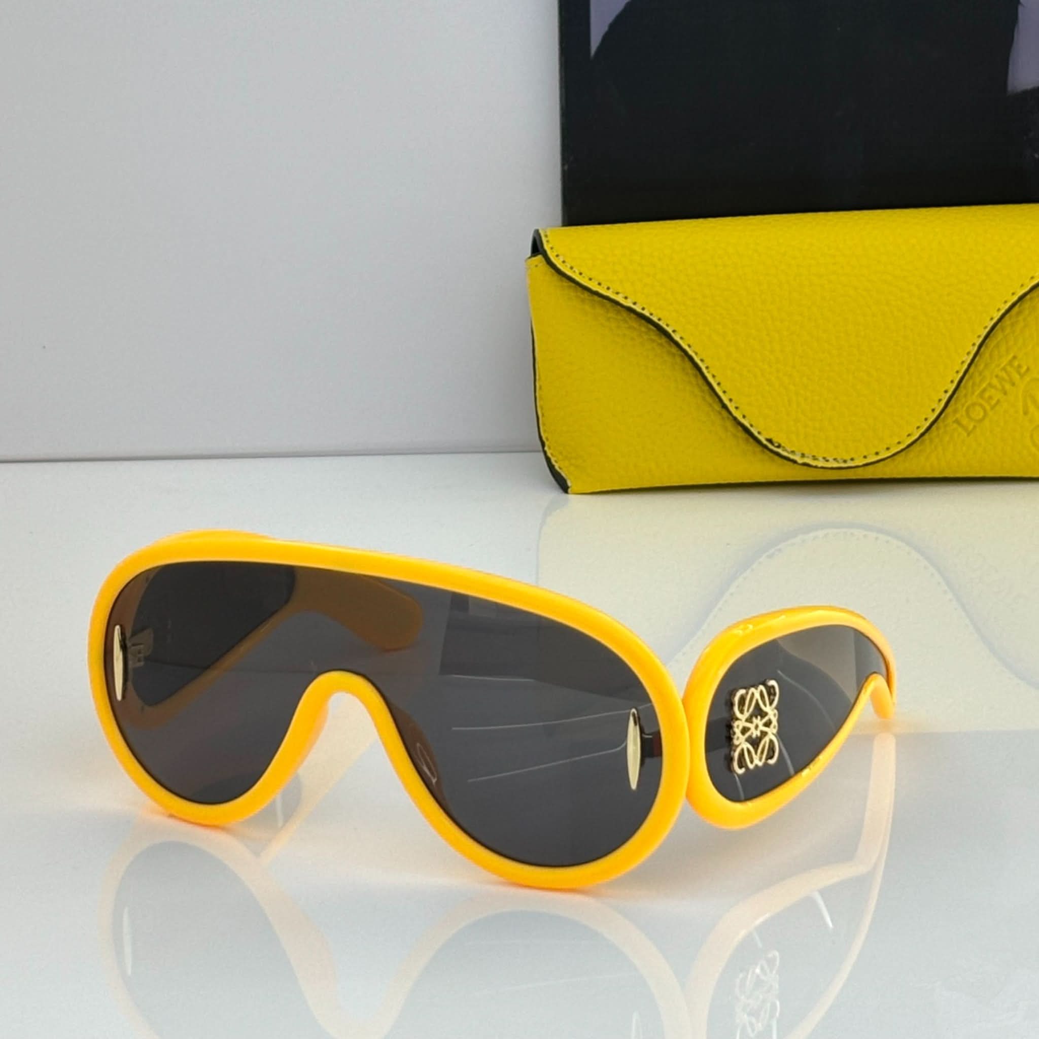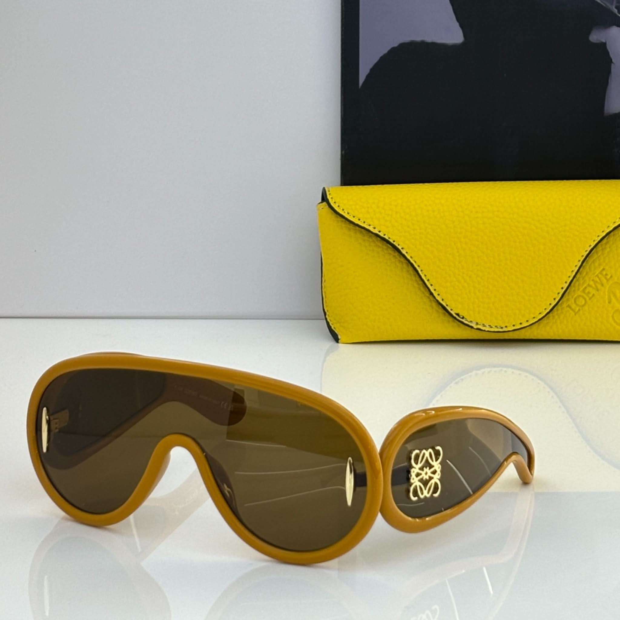 Design: Diese Vollrand-Sonnenbrille mit schildförmigem Acetatrahmen besticht durch einen markanten und modernen Stil.