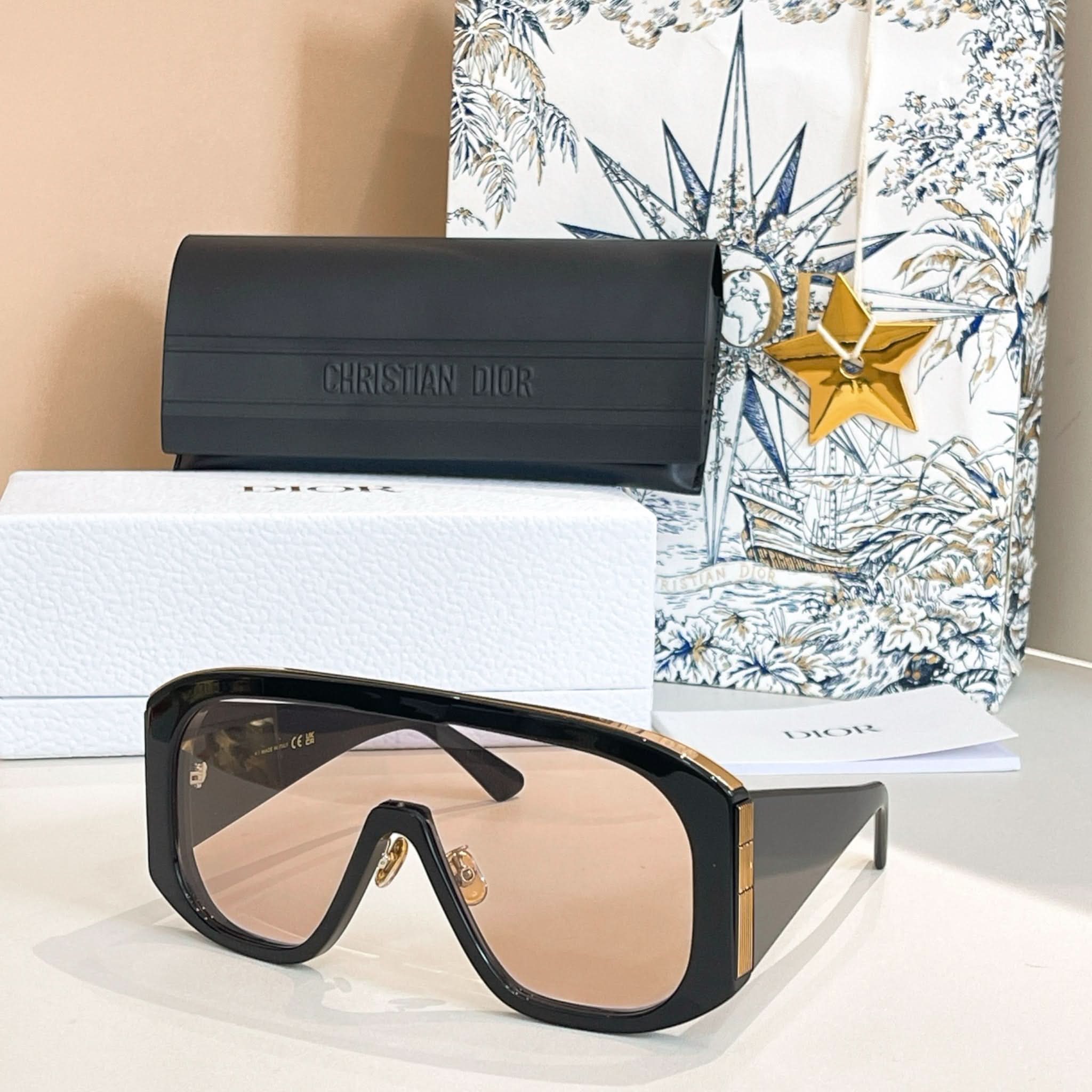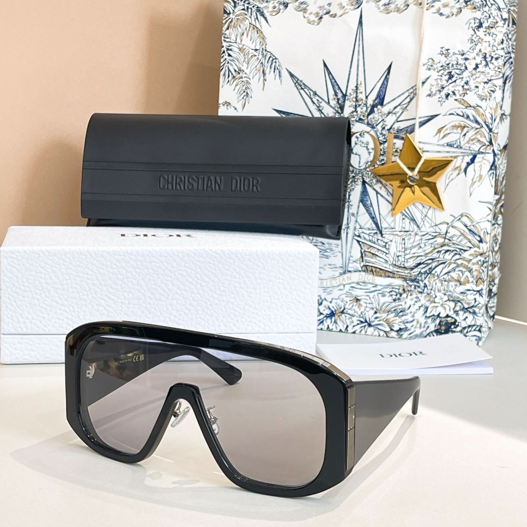 Design: Diese stylische Damensonnenbrille besticht durch ihr modernes und auffälliges Maskenrahmendesign.