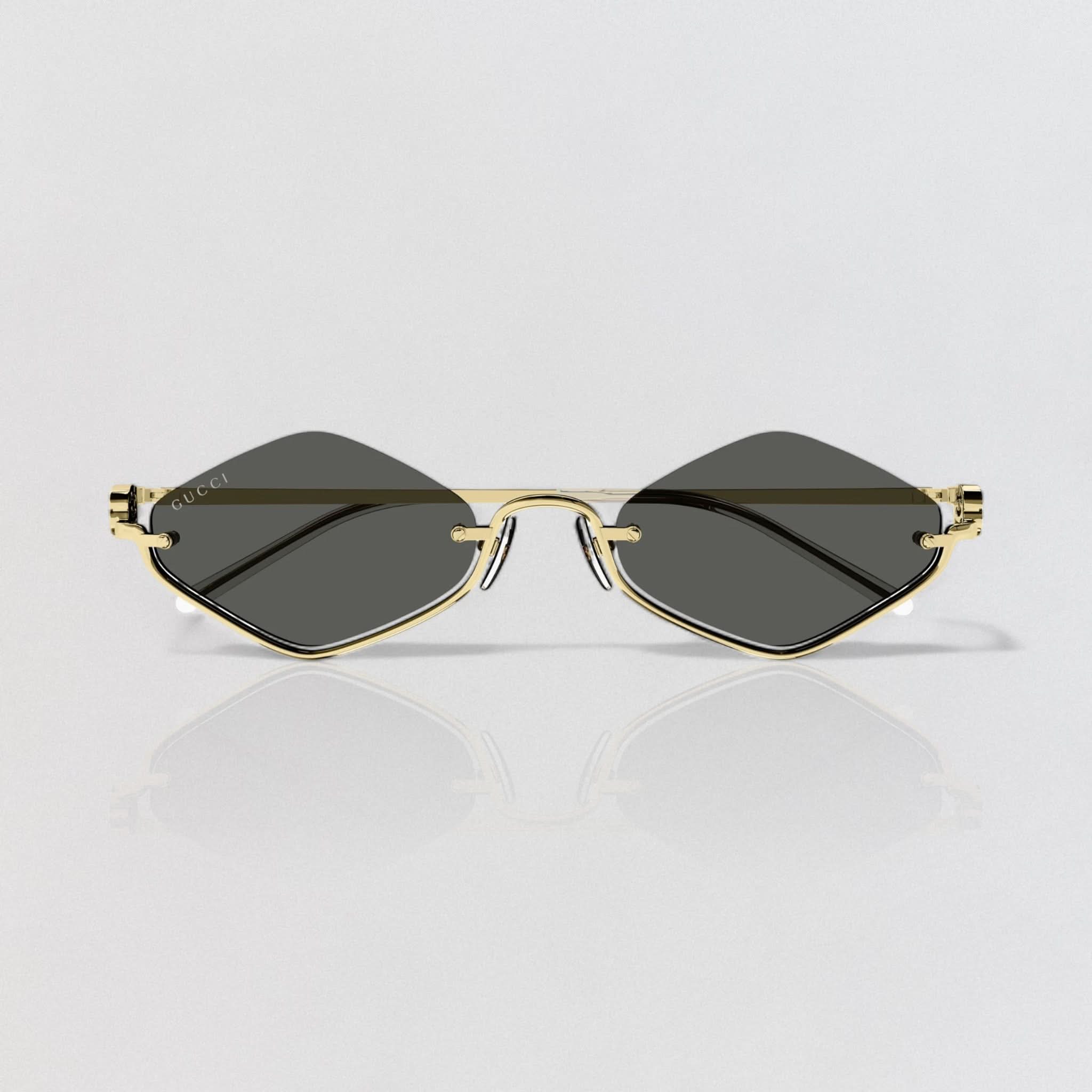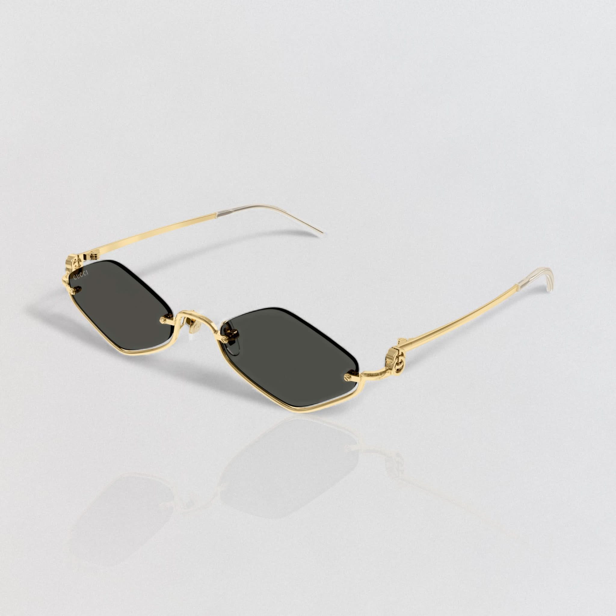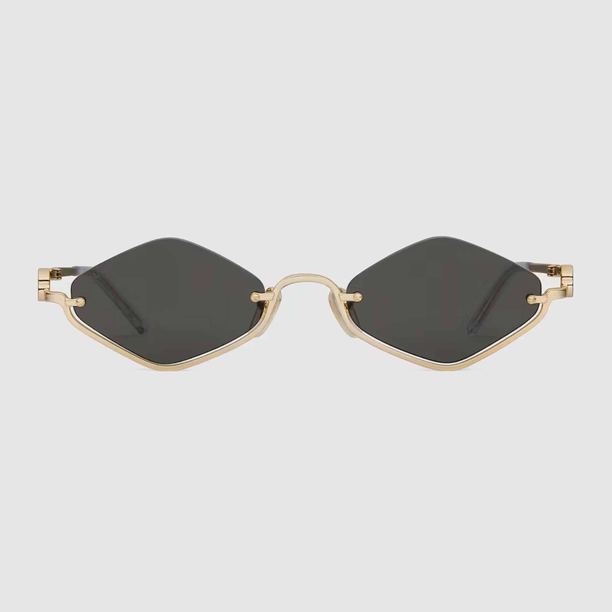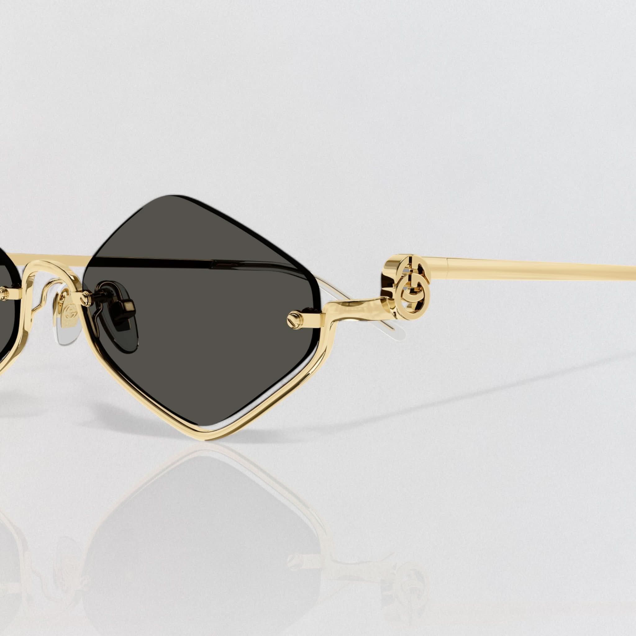 Design: Der goldfarbene, geometrische Metallrahmen ist an den Bügeln mit einem Doppel-G-Schliff verziert.